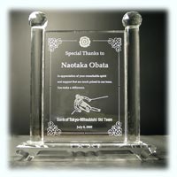 有名企業・団体等のロゴやイラストを彫刻したオリジナリティ溢れた記念品・ノベルティー等の紹介ページ